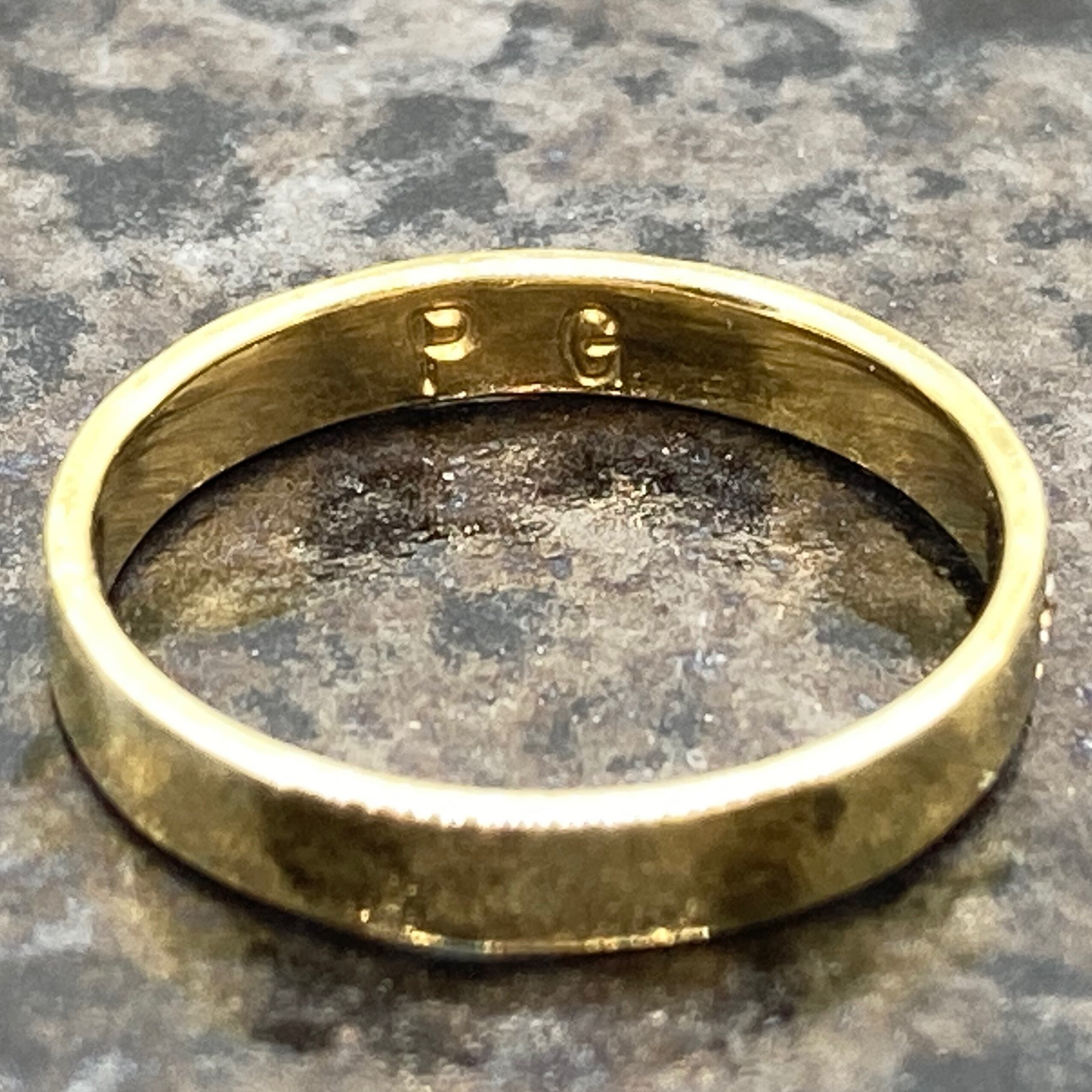 上品でシンプルなデザインが美しい1粒石の平打ちK18GPシルバー刻印リング。